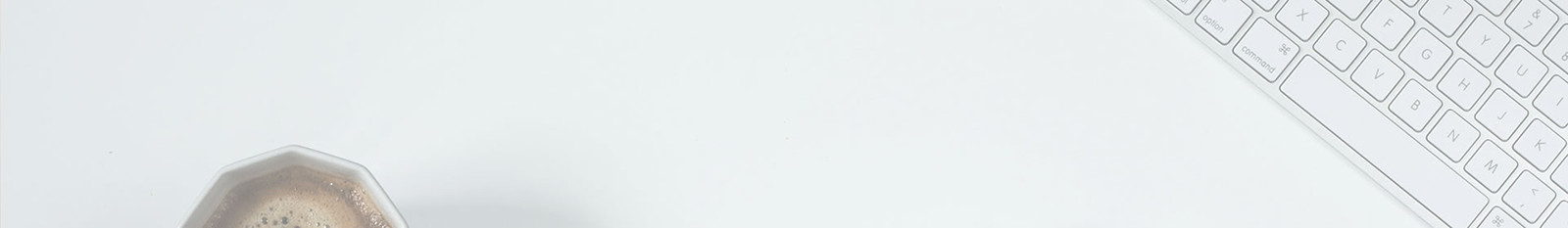 キーボードとコーヒーが置かれた、リモートワークをテーマにしたミニマルな白いデスク